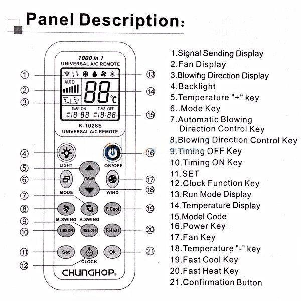 Chunghop K-1028E Code List Panasonic : Amazon Com K 1028e Universal Remote Control For Most Air Conditioning Universal Air Conditioner Remote Control Replacement For Midea Gree Lg 1000 In 1 For Air Conditioner Home Kitchen